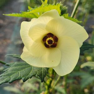 おはようございます☀🙋♀️❗ 早朝花散歩🚶♀️にて… オクラの花💛💛💛 暑さで花数が少ないです😞⤵⤵