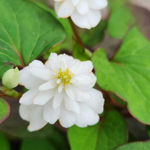 八重咲きのドクダミ🤍🌿🤍🌿🤍 何方かが、故意に植え付けたのかな? 軒下に群生してました🌼💮✨️🌿 野生では、見かけないです💦💦 除けないですね😂😂