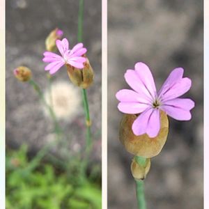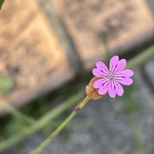 ミチバタナデシコ でしょうか? 違ったらごめんなさい🙏 膨れた総苞から ピンク色の可愛いお花を 1〜数個咲かせます🌸 小さいです🤣 ナデシコ科 イヌコモチナデシコ属