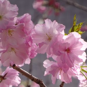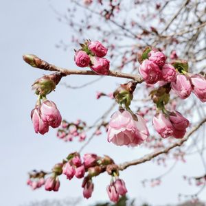 こんにちは🌤植物園の桜、紅豊(べにゆたか)です🌸🌸濃紅色で大輪、八重咲き💓 1961件北海道で作出された品種で花に少し 芳香があるそうです✨✨✨