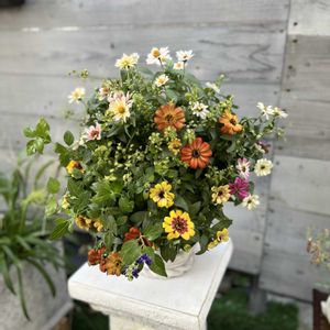 ハンギングバスケットレッスン ニチニチソウとジニアのウォールバスケット ギャザリングしないのは初めてでした🔰 やはり基本は大切です!
