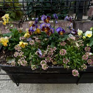 100円か150円位の名無しのビオラ。この子たちが一番よく咲いています。 暖かくなってきてさらにモリモリしてきた(*´ω`*) 原種のチューリップを植えてあります。