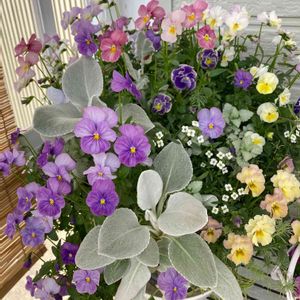 半年近く楽しませてくれてるパンジー達💕 ハンキングバスケット、だいぶ形が崩れてきたけれど、もう少し(*•̀ᴗ•́*)و ̑̑頑張って😆