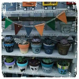 先日の雨の中😅 せっかく休みだったので、植え替えしましたよ😃 やっとのやっとです🎵🎵 イベント出店でバタバタしていて自分の多肉ちゃん達はほったらかしになってて😭😭 以前からコツコツとゲットしていたリメ鉢、一部自作もあるけど😃 植え替え進んでます