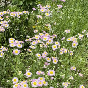 茨城県にあるキャンプ場🏕️ 🌳ディキャンプに行って自然の中で良い空気を吸って来ました ①ピンク色のハルジオンが可愛らしい ハルジオンとヒメジョオンの違い ※ハルジオンは蕾がうつむいてヒメジョオンは上向きだそうなのでこれはハルジオンだと思います ②AIによるとセリバヒエンソウだそうです ③広い自然の中にロッジやコテージが沢山あって写しきれない💦 ④⑤ お空の犬の代わりに連れて来ました たんぽぽや小さな紅葉🍁に興味津々🐶🐕♪🤗