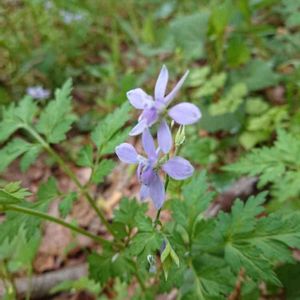 セリバヒエンソウ(芹葉飛燕草) 今年も林の中でひっそりと咲いてました。