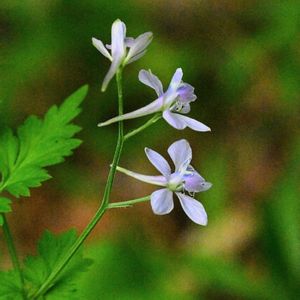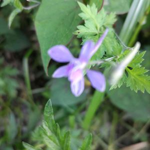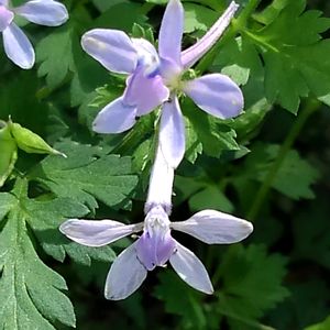 ムラサキケマン?いや、セリバヒエンソウかな? 砂利に生えていたので、移植しました