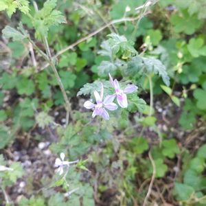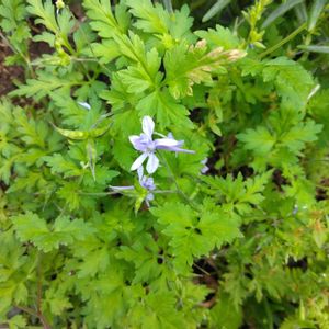 庭先に先月から咲いている、小さな紫の花をつけた草花で、葉っぱは香ばしいごまっぽい匂いがします