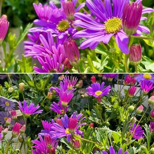 🌸ブラキカム ブラスコ💖 キク科ブラキカム属 別名 ヒメコスモス(姫秋桜) 花言葉「いじらしい」「優美」「可憐な恋」 《名前の由来》 「ブラキカム」というのは、流通する上での商品名、 本来は「ブラキスコ(Brachyscome)」というのが正しいそうです。 「ブラキスコメ」とは、ギリシャ語で「短い」という意味の「ブラキ(Brachys)」と「束毛」を意味する「コメ(Kome)」が合わさってできた名前で、種の冠毛が短いことに由来