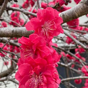 ご近所さんの枝垂れ花桃。 年配の奥さんがおられたので、「可愛いですね〜」って声掛けたら、たくさん枝を切ってくださいました。 側溝から生えてた1メートルくらいの木も抜くのを手伝ったら「持って帰って植えたら良いよ」と、頂いちゃった💕 根付くと良いなぁ🎶