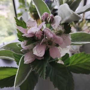 ご近所さんに頂いた ブラックベリーの花✨ 何とも可愛い和紙のような くすみカラーで次々と咲いてくれて可愛いです🌸 ラムズイヤーも定番の可愛さ💕🥺 投稿が追い付かない💦 時間と視力が欲しい🤣