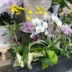 ランのアレンジお作りしました〜✨ お祝いやプレゼントに✨🎉 小さめのミディファレノ一本仕立て、3本立てミディファレノ、大きめもございます〜✨✨✨