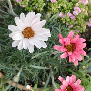 ローダンセマムのアプリコットジャムさんとマーキュリーさん。 順調に開花が進んでます😊 春はやっぱり、ピンクですね❣️