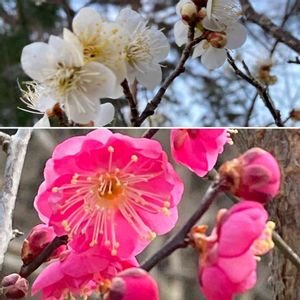 穏やかなお天気です☀️ 今年もどうぞ宜しくお願い致します💐 花見山で希望の花を見つけました 紅白の梅の花に薄らピンクの椿 今年も笑顔いっぱいに穏やかに お過ごしくださいね◡̈︎*♚︎‧*˚✩︎‧₊˚