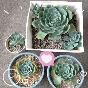 七福神から4つの子株を外したら、さらに4つの子株ちゃんたち💞💞 写真の3つと反対側に1つ 先週より僅かに成長してる! この3つの子たち、近過ぎない??大きくなったらぶつかっちゃうよ~🍡
