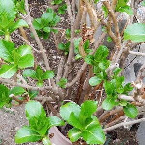 鉢のまま移植した アジサイも力強く大きくなり 新芽をつけだしてます