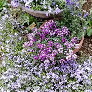 好きなカラーです♡ 淡いパープルの芝桜 濃い色のアリッサム 中を取り持つラベンダー