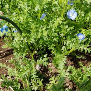桜めぐりから 帰ってくるとお庭には ネモフイラが咲きだしていました 今年は平凡なブルー🌁
