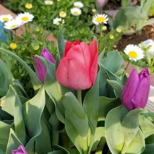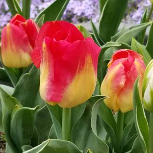 今朝花開いた二色咲の可愛い チューリップが可愛いた🌷