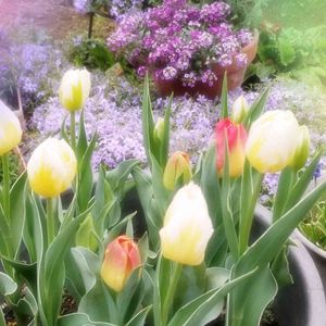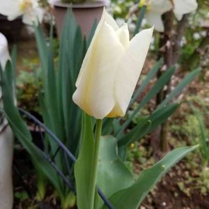草むしり中のお庭♪ クリーム色のチューリップも咲いてます 可愛いね。