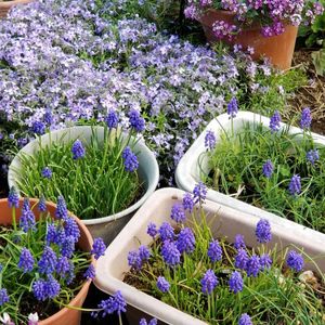 お庭は花ざかり あちこちに出てきたムスカリを拾い集めてプランターに でも、まだまだあります😆