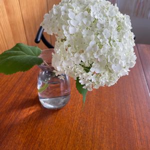 アナベル、家の裏にあると誰も見てくれないので家の中に連れてきました🥰 水揚げうまくいってホッ(前回大失敗…) こんもり大きく咲いてくれて、本当に可愛いです🫰 今週末は娘の誕生日なので、部屋の飾り付けが始まってます。背景がキラキラ🤩