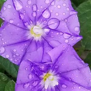 雨上がりの コンボルブルスという名前の朝顔に似たお花