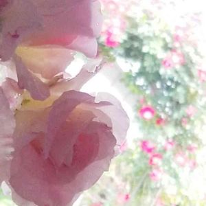 バラとクレマチスの コラボです 同じ色にしました。 今日は☔ 昨日のpicです