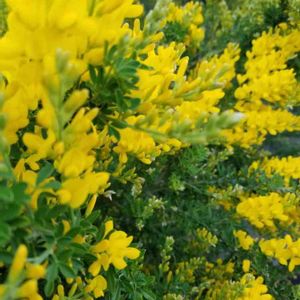 エニシダ てっぺんの方で咲だしました。 こんなに大きくなるとは😅