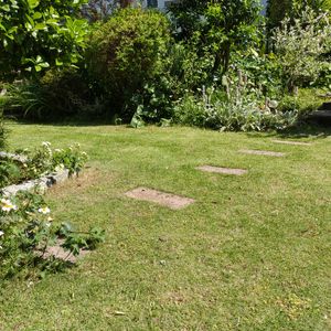 今日の午前中は芝刈り! ずっと見て見ぬふりしてました( ´△`) 無理しないように、芝刈り機で出来るとこだけさっとやるつもりだったのに、やっぱり気になって、石を除けて根を切ったり、かなり頑張りすぎました。
