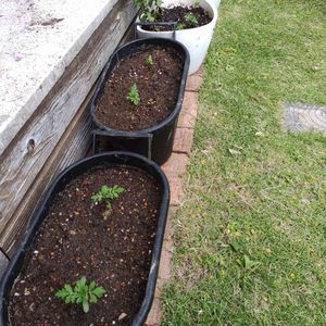 和室前のくつぬぎいしがいつの間にか植物の切り戻し養生場所になっていました。🌼 雨水タンクにちかいから、水やりがしやすくて、日当たりもいいので。 今日は増し土したり、ミリオンと油かすなど施してやれやれ。もう一回り、大きく育って欲しいな😃