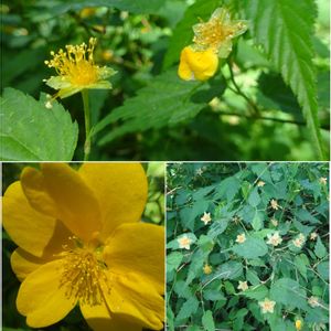 おはようございます GS今日のお花 ヤマブキ 咲いた後も可愛い 右下 花殻 散歩道で 4月21日