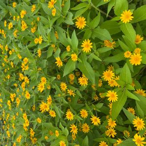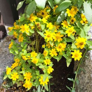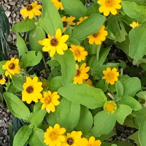 《小さなカワイイ黄色の花がいっぱい🌼》 花期になると、茎上部の葉の付け根から花柄を伸ばし、鮮やかな黄色の頭花(とうか)を咲かせます。 一輪の花に見える部分は、外周の花弁のような舌状花(ぜつじょうか)と、中心部分の小さな管状花(かんじょうか)から作られた集合花です😆 花壇に最適な花ですね🌼 「君の名は」