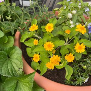 おはようございます⛅️ 今撮りの庭のお花達🌼🌼🌼 イトバハルシャギクが咲き始めたので黄色💛のお花ばかり投稿します 家族に体調不良者がいて色々家事に追われています😅💦 お花のお世話は私のストレス発散にもなってるようで時間が許す限りに庭に出ていますが……🎶💓 ごめんなさい🙏コメント欄閉じさせていただきます🙇♀️ ①植えっぱなしで楽々なイトバハルシャギク🌼黄緑の葉っぱとお花の相性抜群❣️毎年ありがとう🥰 ②PWスーパーベルダブルイエロー💛植えて約ひと月位かな🤔 黄色💛のカリブラコアが無かったのでお迎えしました💕 ③ビオラを抜いた花壇に例年と一緒😅メランポジューム🌼を7本植えました🌱🌱10月いっぱいまで頑張ってネ\(*⌒0⌒)♪ ④大きな鉢植🪴のウインターコスモス🌼ボチボチ咲いて来ました💛 ほとんど一年中咲いてるような🤣 ⑤ご近所の友達に昨年いただいたけど名前は分かりません😅 調べるとコレかなと思うお花は出てきますが…定かではないので💦