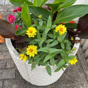 おはようございます♪ 朝は涼しく感じます🌿 ①② エキナセア 苦手なお花ですが チャレンジします😅 何度も枯らしています💦 ③ メランポジューム🌼 可愛くて強い子です♡ ④寄せ植え🎶 ⑤ ユーフォルピア🤍 アジュガ💚🤎 有り合わせも添えて… 梅雨明けです🌻 元気にいきましょう🍧