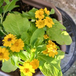 今日のお花、ジニアの寄せ植えです✨ センニチコウも元気です😀 メランポジュームが、ちょっと押され気味かな😅