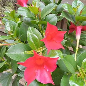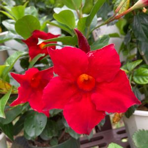 突然の暑さにびっくり🫨 マンデビラの赤が暑さに鮮やかです。夏だなあ。