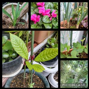 今朝の我が家の植物たち🌿💚🌿三枚目は挿し木して三年目で咲いてくれた紫陽花~ピンク色でした💖