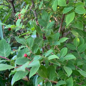 ここらでは「おわん」と呼ぶ、夏に赤くて酸っぱい実をつける山の低木です。