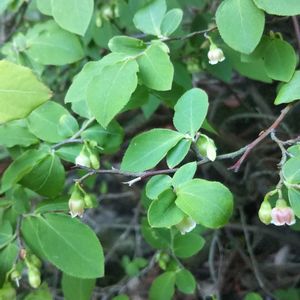 山にある木で、花も実もチューリップの花の形をしている可愛い植物です。 実は、緑から赤、紫、黒に変化していき、ブルーベリーやジューンベリーのような味がします。通称「ごけそ」だそうですが、正式名称がわかりません。