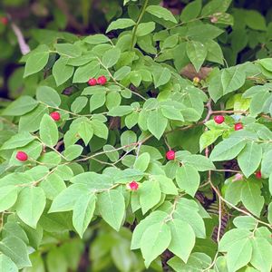 臼の木 ツツジ科スノキ属 ウスノキの実が赤く実りました。 実の先端が餅つきの臼のように丸く凹んでいるところから名が付いた。 甘くて、美味しくて、子供の頃は、山に行くと必ず摘んで食べたものです。一粒口に含めば懐かしく、子供の頃のそのままの味です。