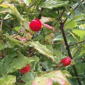 ◎ヒペリカム ◎グミ 食べてみました!ほの甘くて酸っぱさも少しあり、苦味はほんの少し。思ったより柔らかでした❗️ ◎八角グミ(この辺ではこう言いますが) 改め ウスノキ ◎ミズ うちのは、か細くて食べられません😅