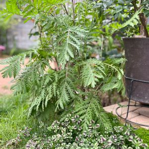 元気なタンジーの足元に、クローバーのベッドが広がってきました。犬のお気に入り🐕 奥にちらっと赤く見えるのは地植えにしたブルームーン第二弾準備中の葉っぱです💜 タンジーはバラのコンパニオンプランツというので横に植えましたが、何だか窮屈そうで、お互い邪魔じゃない? 引きだとジャングルっぽい… 🏷️8日は葉っぱの発表会 初夏の玄関脇🌿の葉っぱの発表でした!