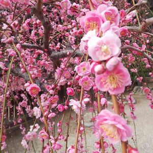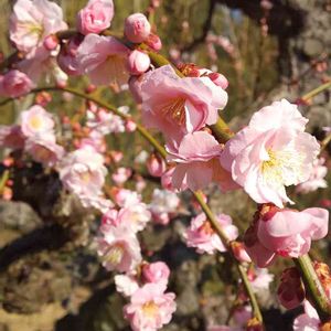 我が家の枝垂れ梅が7分咲きくらいに。春は目の前!オラ、ワクワクすっぞ!w