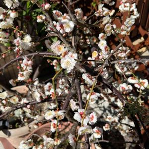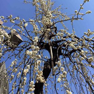 毎年楽しみにしている、我が家から角を曲がって15mほど離れたお宅に咲いている枝垂れ梅です🌸 可愛らしい花姿が気に入っています。その花びらが舞い舞って我が家に届いています😊
