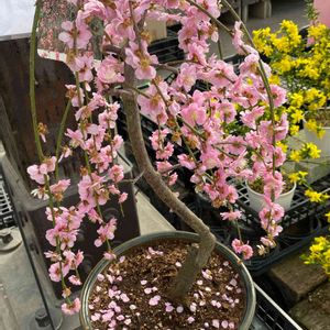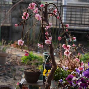 今最後の一輪が散りました 枝垂れ梅がちらほらっと 今年も咲いてくれました 植え替えても少し大きく育ったらいいな〜 もう少し花数も増えるといいな~