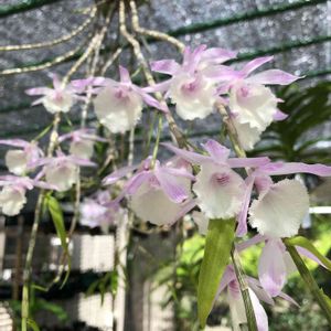 ヒマラヤから東南アジア一帯に生息する着生ラン。枝垂桜のように節のある茎にぶら下がるようにして花を咲かせます。🌸花の唇弁のふち一周にうぶ毛が生えてます。コルク付けしようと思ってるのですが間に合わず、ちょっとカッコつけて撮ってみました!(笑)