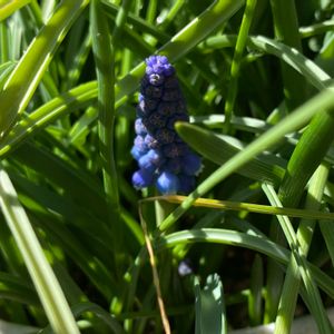 土手や道端ではありません😅 お隣りさんから頂いた 2年目のムスカリの鉢です 猫草の様な生え具合😆 今朝一つ見っけ💕 お隣りさんとの境界にセッティング😊 感謝です🥹
