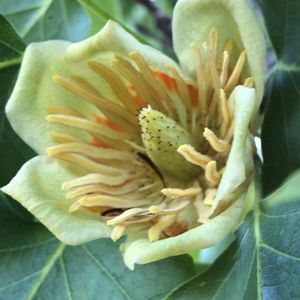 この木何の木気になる木〜♩♬ この歌詞が分かるなんて… 年齢が、バレますが、 百合の木でした。 チューリップに🌷似たお花が咲くんですね。 娘の大学で見かけて、何の木〜って 思っていたら、息子が新宿御苑のパンフレットを持って帰り、判明しました。 GOODタイミング👍