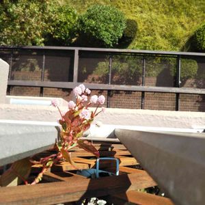 ベランダの外に向かって咲きだすポリゴナム どこへ種を撒き散らすのやら!